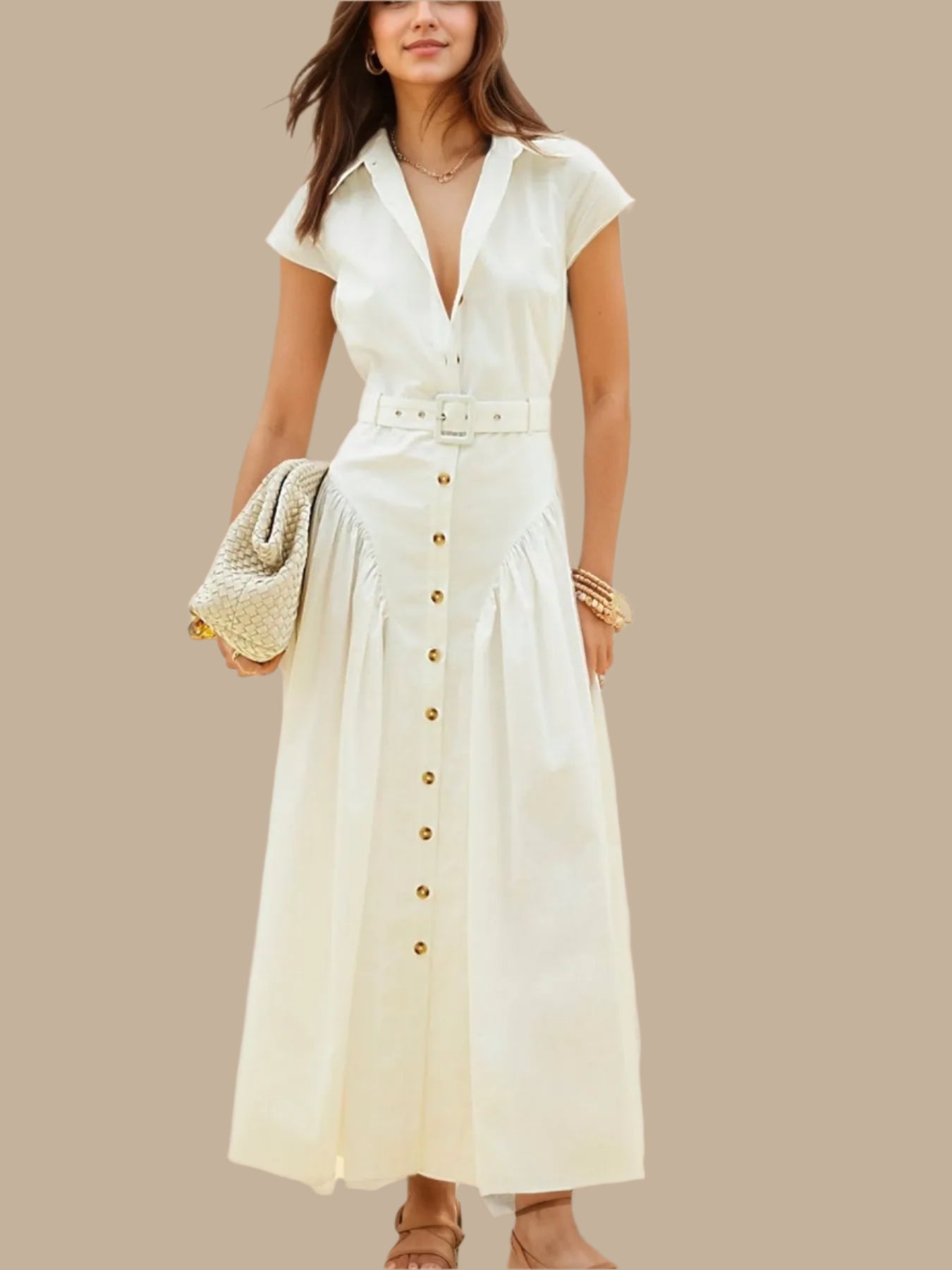 The Mallory Button-Front Cap Sleeve Midi Shirt Dress