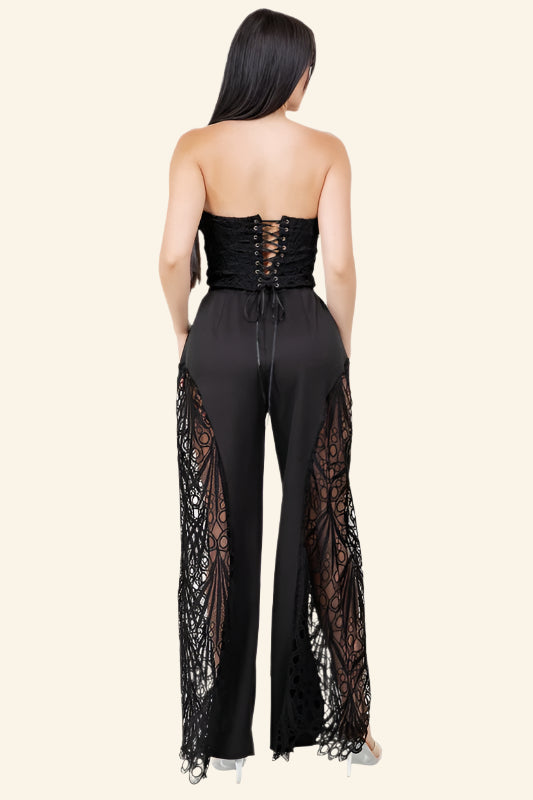 The Hermessa Black Lace Corset & Wide Leg Lace Pant Set